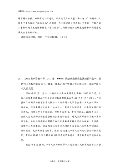 转载请注明出处: 名校卷 » 泰安市2022年初中学业水平考试道德与法治试题