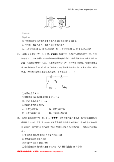 转载请注明出处: 名校卷 » 泰安市2019年初中毕业生学业考试物理