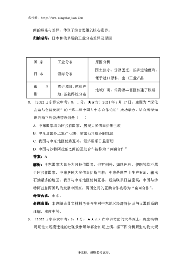 转载请注明出处: 名校卷 » 泰安市2022年初中学业水平考试地理试题-解析