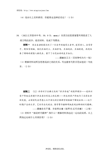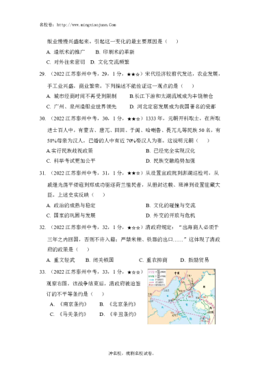 转载请注明出处: 名校卷 » 泰州市二〇二二年初中学业水平考试历史试题-原题