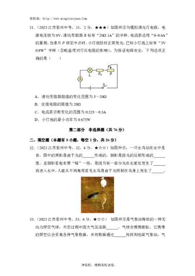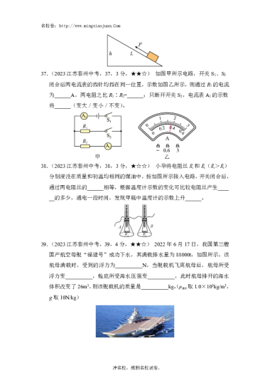 转载请注明出处: 名校卷 » 泰州市2023年初中学业水平考试物理试题-原题