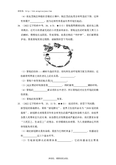 转载请注明出处: 名校卷 » 2022年铁岭市八年级单科结业统一考试生物试卷-原题