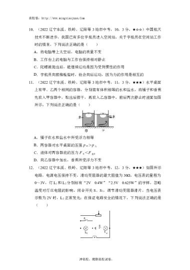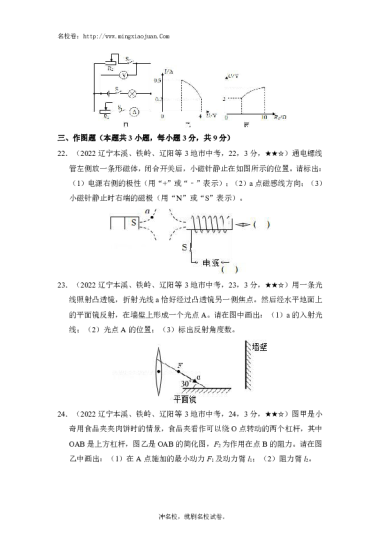转载请注明出处: 名校卷 » 2022年本溪铁岭辽阳市初中毕业生学业考试物理试卷-原题