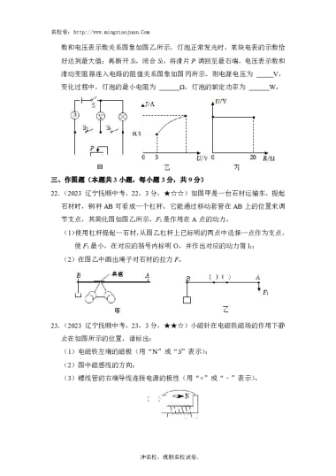 转载请注明出处: 名校卷 » 2023年抚顺市铁岭市初中毕业生学业考试物理试卷-原题