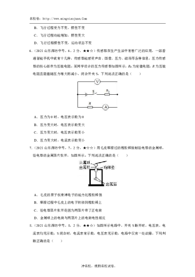 转载请注明出处: 名校卷 » 2021年潍坊市初中学业水平考试物理试题