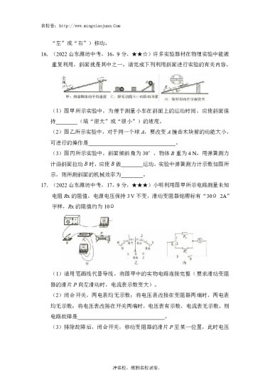 转载请注明出处: 名校卷 » 2022年潍坊市初中学业水平考试物理-原题