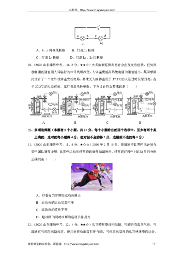 转载请注明出处: 名校卷 » 2020年潍坊市初中学业水平考试物理试题