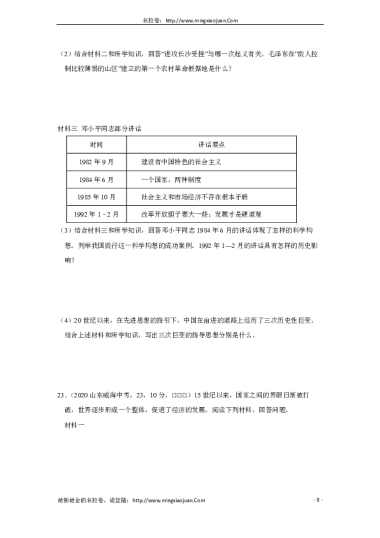 转载请注明出处: 名校卷 » 威海市2020年初中学业考试历史