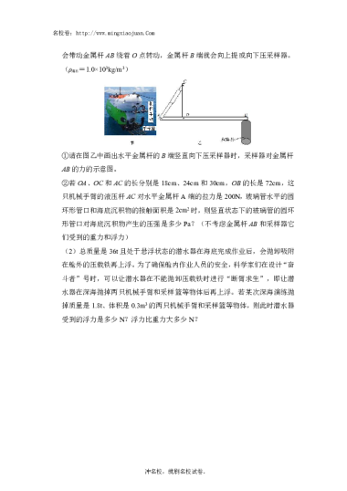 转载请注明出处: 名校卷 » 2022年武汉市初中毕业生学业考试物理、化学试卷物理部分-原题