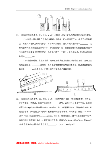 转载请注明出处: 名校卷 » 2019年江苏无锡初中学业水平考试物理试题