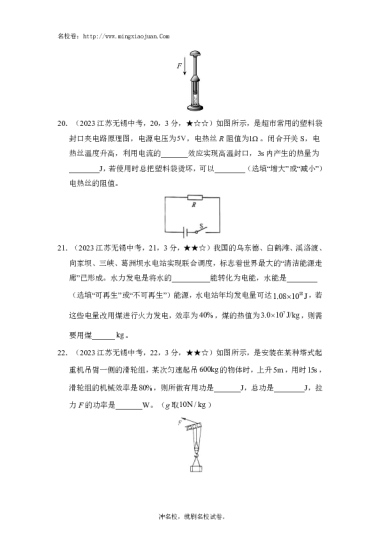 转载请注明出处: 名校卷 » 2023年无锡市初中学业水平考试物理-原题