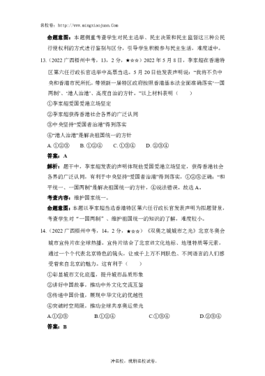 转载请注明出处: 名校卷 » 梧州市2022年初中学业水平考试试题卷道德与法治-解析