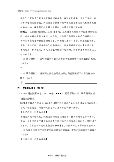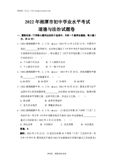 转载请注明出处: 名校卷 » 2022年湘潭市初中学业水平考试道德与法治试题卷