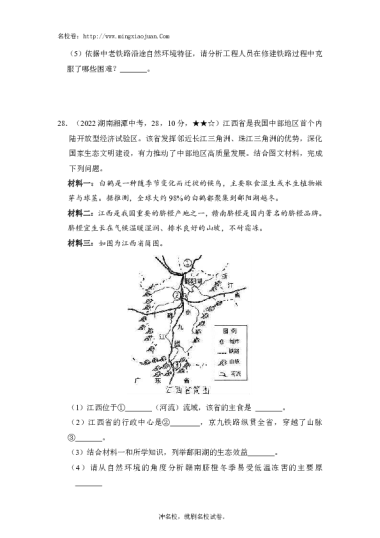 转载请注明出处: 名校卷 » 2022年湘潭市初中学业水平考试地理试题卷-原题