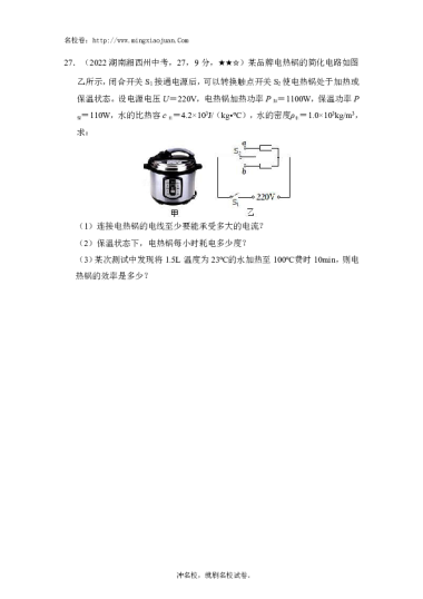 转载请注明出处: 名校卷 » 2022年湘西土家苗族自治州初中学业水平考试物理试题卷-原题