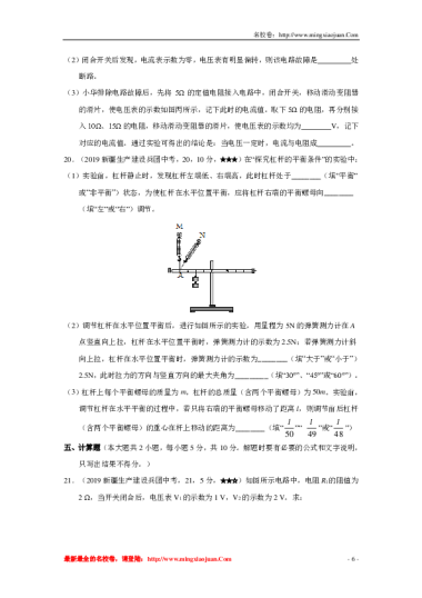转载请注明出处: 名校卷 » 新疆生产建设兵团2019年初中学业水平考试物理