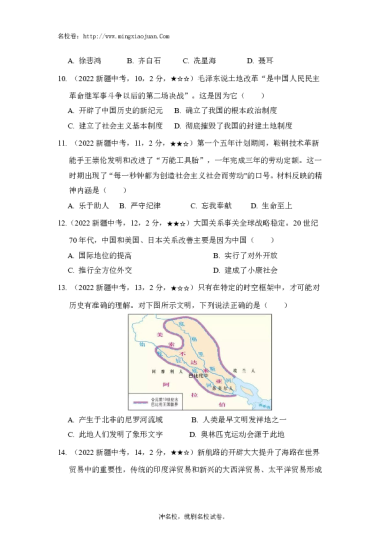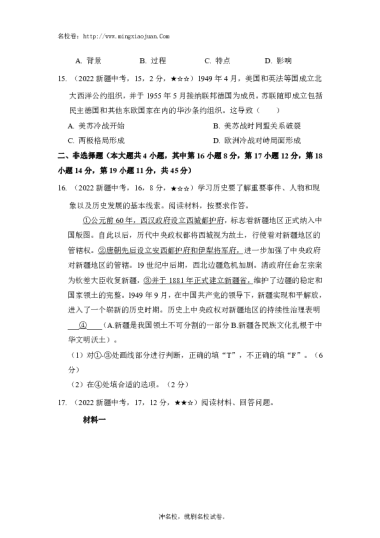 转载请注明出处: 名校卷 » 新疆维吾尔自治区新疆生产建设兵团2022年初中学业水平考试历史试题卷-原题