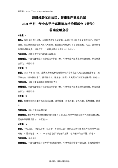 转载请注明出处: 名校卷 » 新疆维吾尔自治区、新疆生产建设兵团2021年初中学业水平考试道德与法治题部分(开卷)