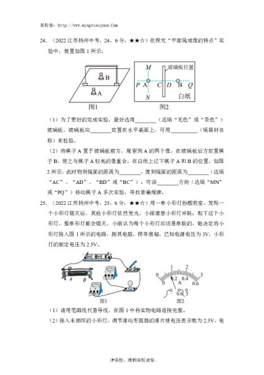 转载请注明出处: 名校卷 » 扬州市2022年初中毕业、升学统一考试物理试题-原题