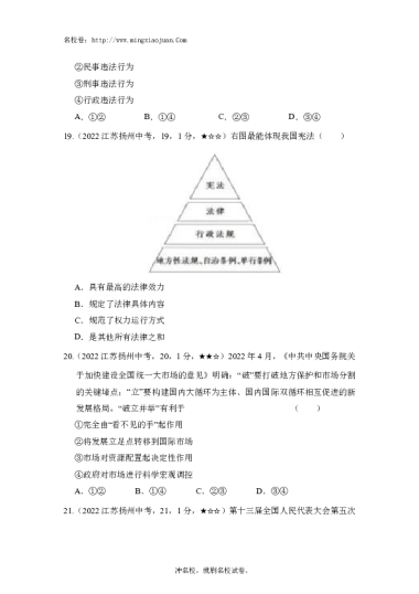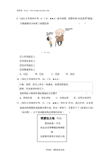 转载请注明出处: 名校卷 » 扬州市2022年初中学业、升学考试道德与法治试题