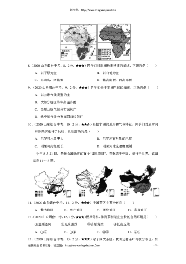 转载请注明出处: 名校卷 » 2020年烟台市初中学业水平考试地理试题