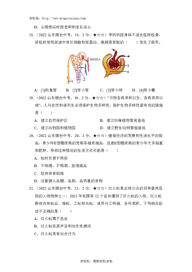 转载请注明出处: 名校卷 » 2022年烟台市初中学业水平考试生物试题-原题