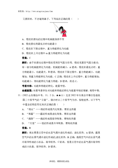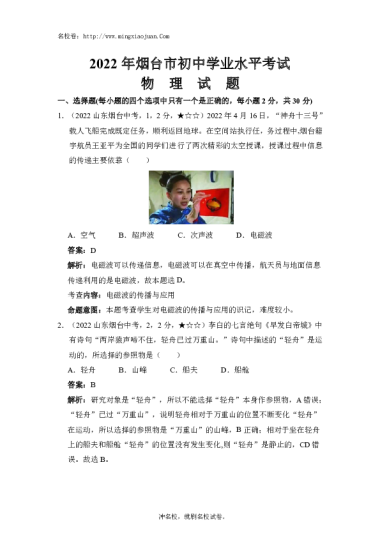转载请注明出处: 名校卷 » 2022年烟台市初中学业水平考试物理试题-解析