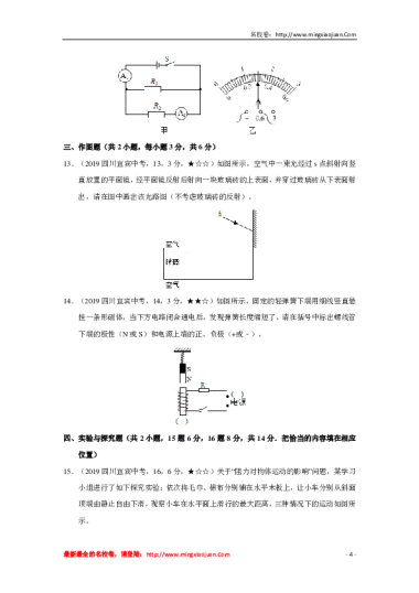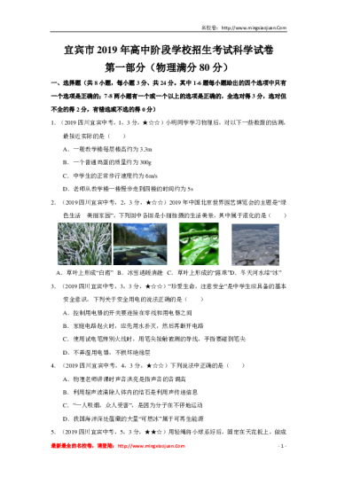 转载请注明出处: 名校卷 » 宜宾市2019年高中阶段学校招生考试科学试卷第一部分(物理满分80分)