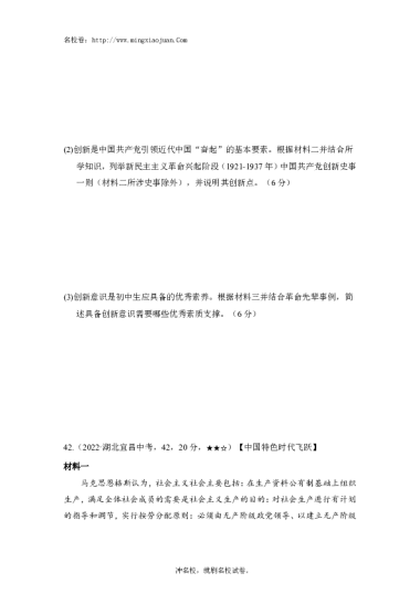 转载请注明出处: 名校卷 » 2022年湖北省宜昌市初中学业水平考试历史试题-原题