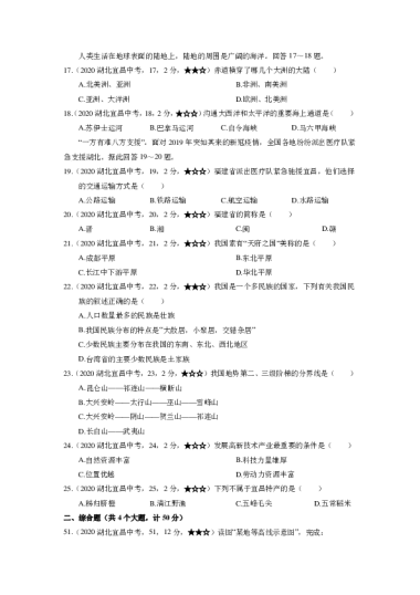 2020年生地会考湖北省宜昌市初中学业水平考试地理试题