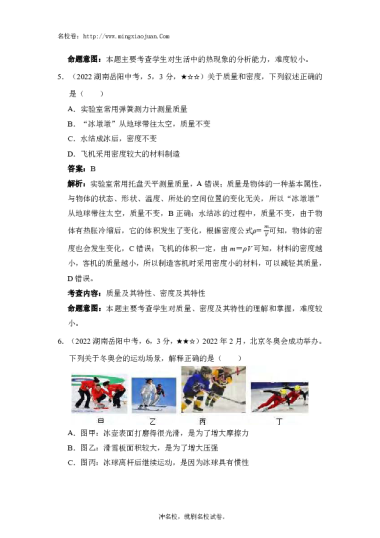 转载请注明出处: 名校卷 » 2022年岳阳市初中学业水平考试试卷物理-解析