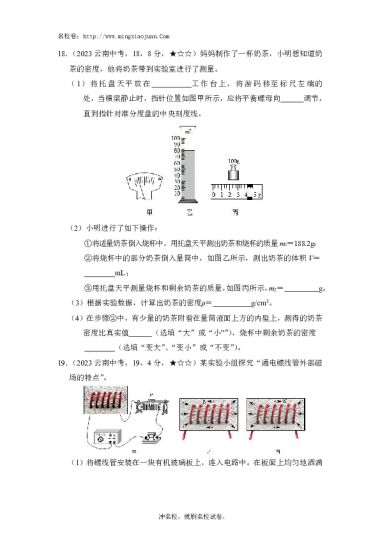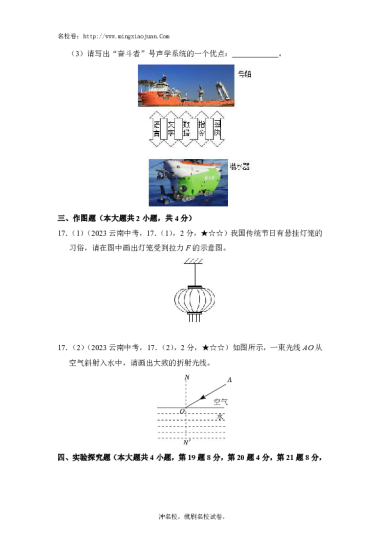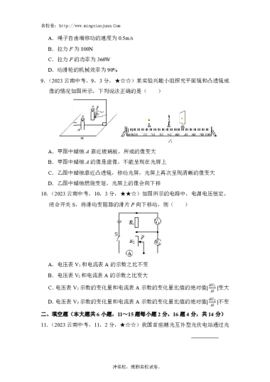 转载请注明出处: 名校卷 » 2023年云南省初中学业水平考试物理试题卷-原题
