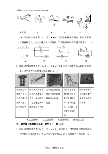 转载请注明出处: 名校卷 » 张家界市2023年初中学业水平考试试卷物理-原题