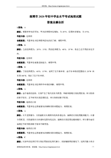 转载请注明出处: 名校卷 » 淄博市2020年初中学业水平考试地理试题