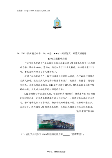 遵义市2022年初中毕业生学业(升学)统一考试综合理科试题卷物理部分-原题